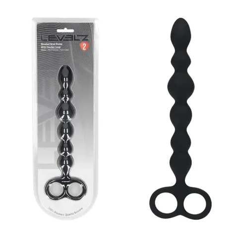 Level up your control and sensation with the beaded anal probe from the LEVELZ collection. Crafted from premium silicone, this Level 2 design features a slim, flexible shaft lined with smooth beads that build intensity with every insertion. The double loop base offers extra-secure handling and easy retrieval, making it perfect for deeper exploration or partner-assisted play. Designed for smooth gliding and responsive movement, this probe is built for users who crave a rhythmic, progressive anal experience. Packaged in a sleek clamshell for bold retail presentation.