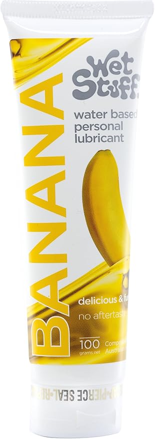 Wet Stuff Banana Personal Lubricant Tube is a delicious, edible, clear, silky lubricant to enhance your intimate pleasure. Compatible with condoms, hypoallergenic, pH balanced, easily and quickly changes to the pH of the body fluid, edible, sugar-free. Water based formula is non-staining and safe for toys.