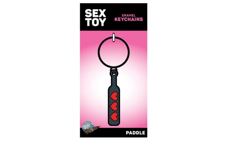 Add a touch of playful kink to your everyday essentials with the Hearts Paddle Keychain from Wood Rocket. This enamel keychain features a sleek black paddle decorated with bold red hearts, making it the perfect little nod to sex positivity and personality.